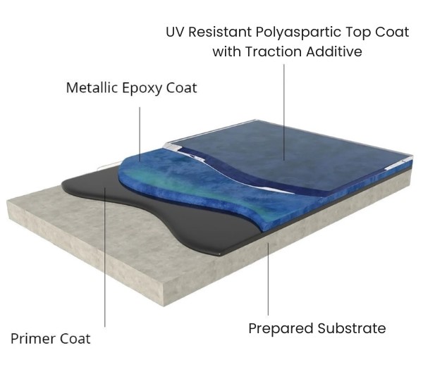 We top coat with polyaspartic for ultimate protection and inspect the surface to make sure it's perfect.